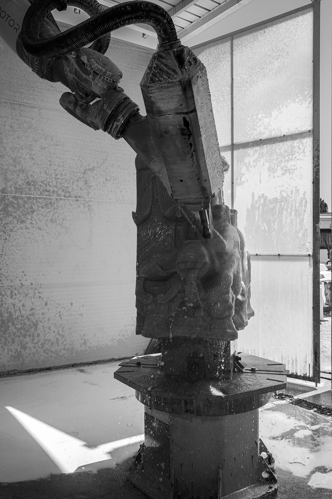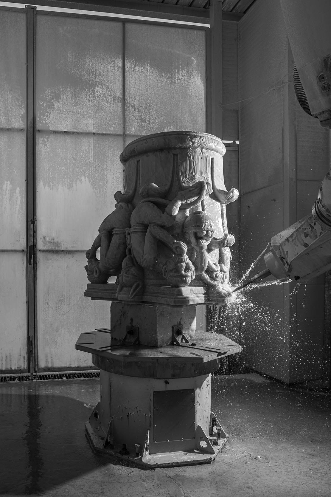 LITIX oversaw all the phases of the work thanks to its experience. In fact, LITIX unites the two brands ROBOTOR and TORART, consolidated by a 20-year presence on the market. ROBOTOR designs and assembles anthropomorphic robots for multi-axis milling, while TORART is an artistic workshop specializing in the creation of sculptures, contemporary artworks, and designs using ROBOTOR robots. LITIX professionals first performed a digital scan of the capital to enable its reproduction; then, a BOT-ONE series robot from ROBOTOR “roughed out” a block of “white Carrara” marble, which was entrusted to expert artisans for manual finishing. To create the capital, which measures 615x905x1030 mm and weighs 380 kg, the robot took just over 200 hours.